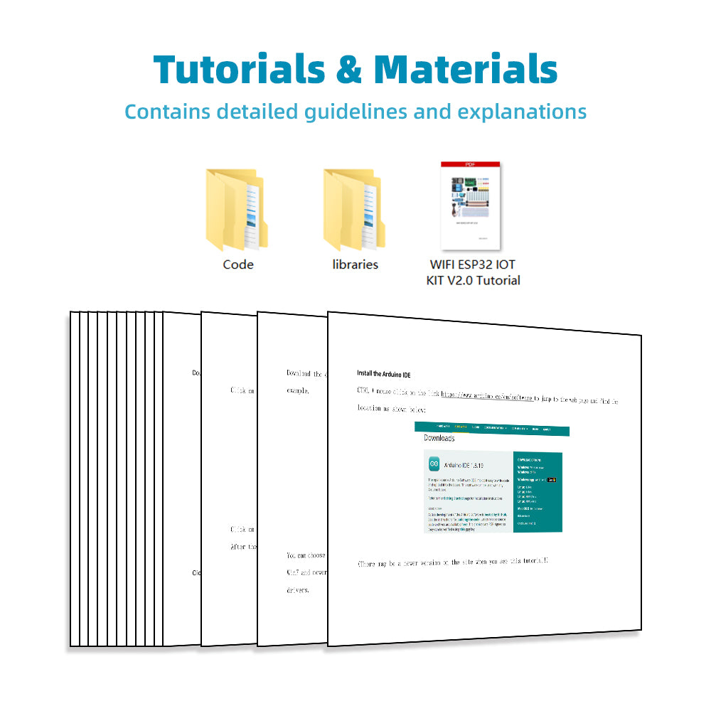 This starter kit includes everything you need to start your DIY electronics project, including the ESP32 microcontroller, breadboard, jumper wires, LEDs, resistors, and much more. Plus, we've included a comprehensive manual and all the necessary codes to help guide you through the process.