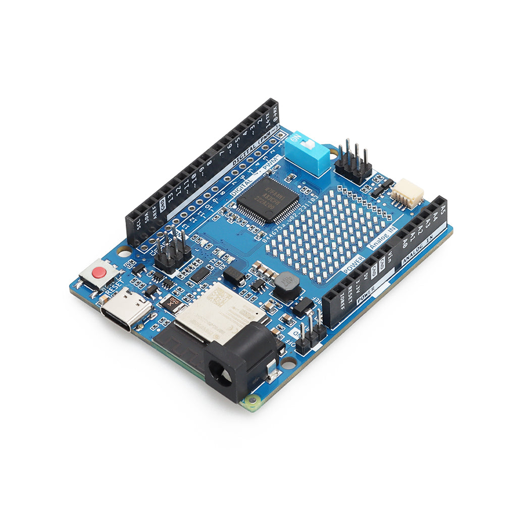 The UNO R4 WiFi hosts the ESP32-S3 module, enabling creators to add wireless connectivity to their projects. Combined with the Arduino IoT Cloud, creators can remotely monitor and control their projects.