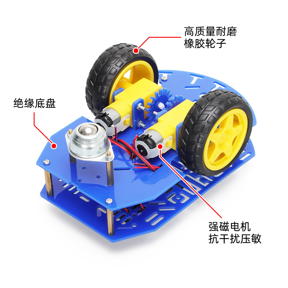 Tscinbuny 2WD Robot Car Chassis for Arduino Development Kit for Beginners List:Blue cart top plate *1Blue cart bottom plate *11:48 DC gear motor 5V *265mm rubber wheels (yellow) *24 x 5 battery box *1CY-15A Bullseye Wheel/Rhombic Ball Transfer 48* 32*19mm*1Hexagonal...
