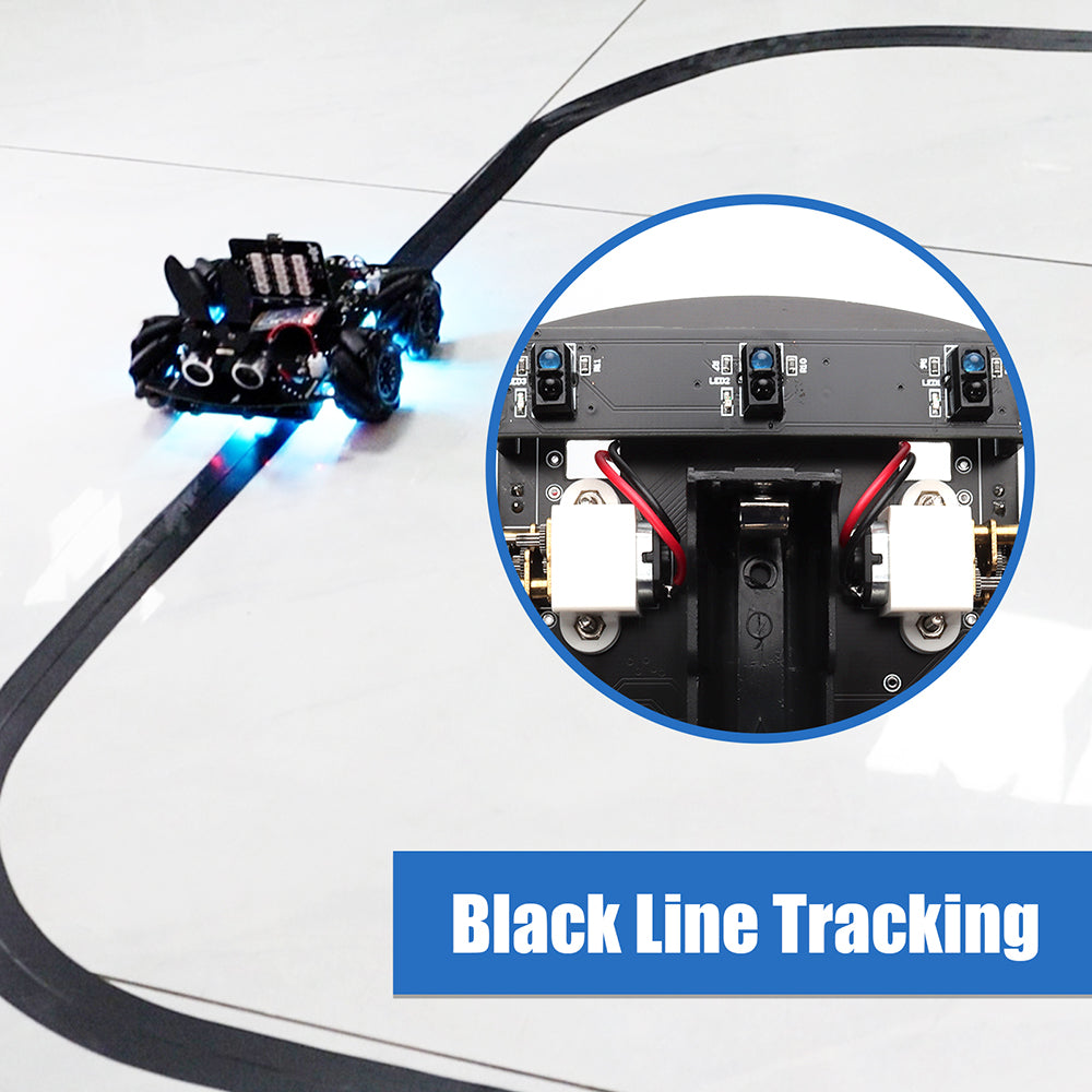 Advanced Programmable Robot with Multi-Functionality: Equipped with three-way black-lines tracking, ultrasonic obstacle avoidance, and Mecanum wheel control, this Arduino robot project offers advanced features for navigating complex paths and avoiding obstacles. Perfect for anyone looking to build a versatile and intelligent programmable robot.