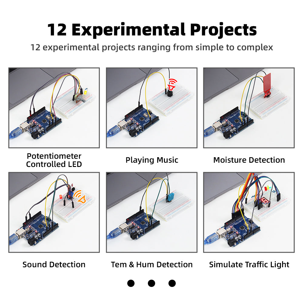 Unlock creativity with our kit's extensive project options. Dive into a diverse range of 12 Arduino projects that cover various aspects of electronics and programming. Whether you're interested in creating a weather station, a smart home device, or a simple robotic project, our kit offers a well-rounded exploration of possibilities to keep you engaged and motivated.